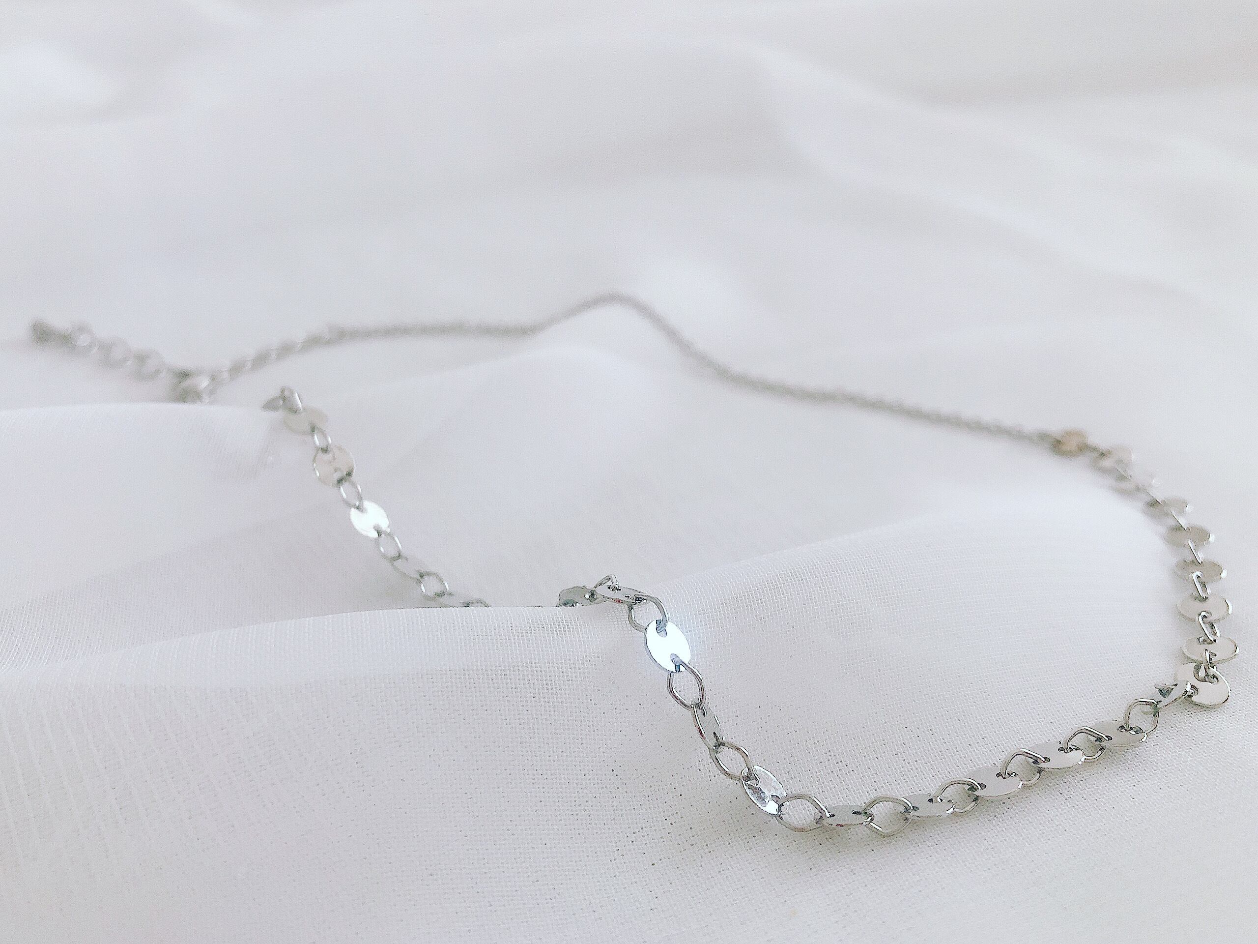 2種類のチェーンを組み合わせています。シンプルなデザインなので重ね付けもお勧めです。